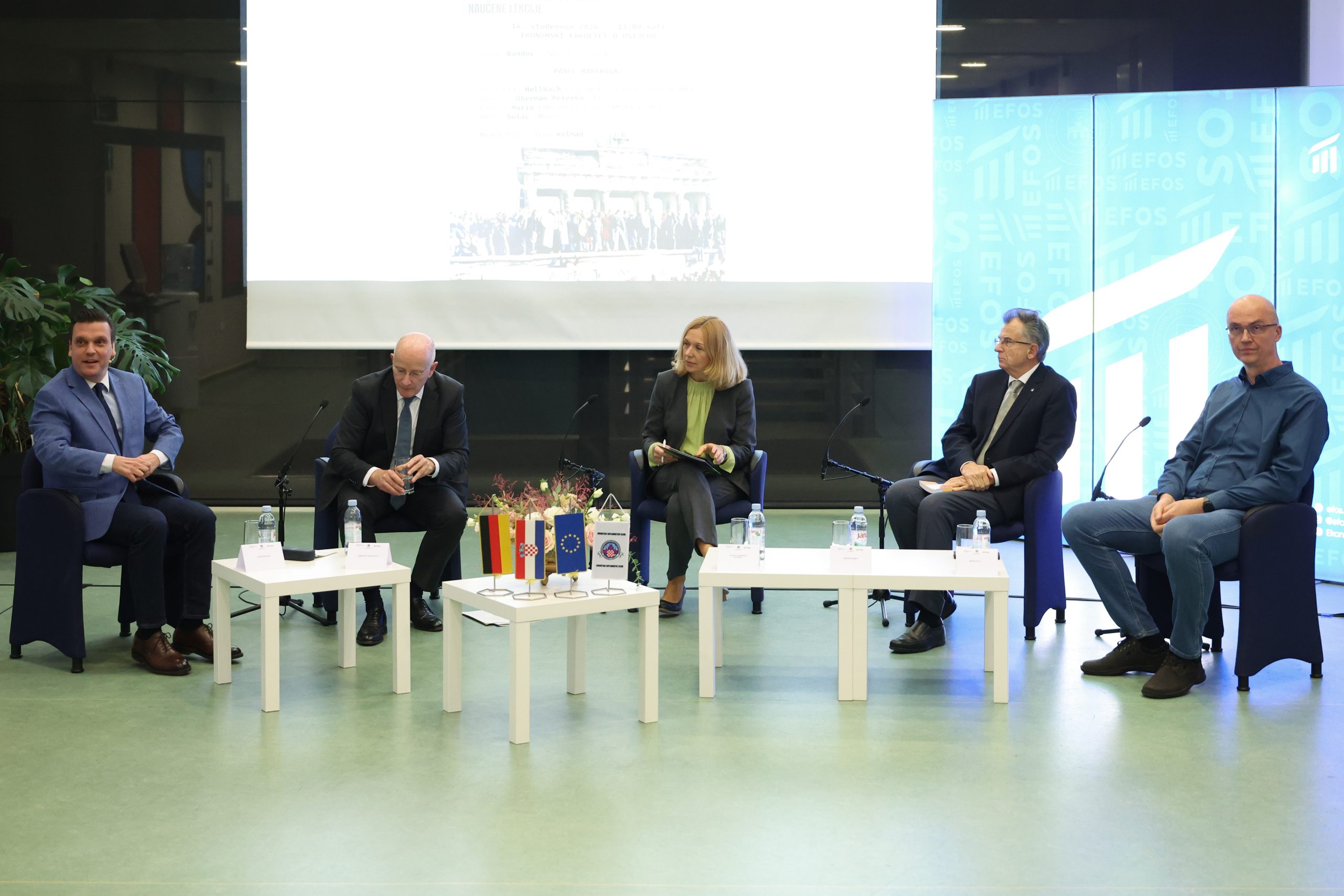 Panel diskusija pod nazivom „35 godina od pada Berlinskog zida – naučene lekcije“ u fokusu je imala značaj i simboliku ove obljetnice za Njemačku, ali i cijelu Europu. Mnogi govornici uveličali su ovaj događaj kao što je Goran Bandov, redoviti profesor međunarodnih odnosa i diplomacije na Sveučilištu u Zagrebu, dok su u panel diskusiji sudjelovali njemački veleposlanik u Hrvatskoj Christian Hellbach, profesorica i prodekanica na EFOS-u Sunčica Oberman Peterka, veleposlanik i predsjednik Hrvatskog diplomatskog kluba Emilio Marin te direktor tvrtke Mono Denis Sušac.